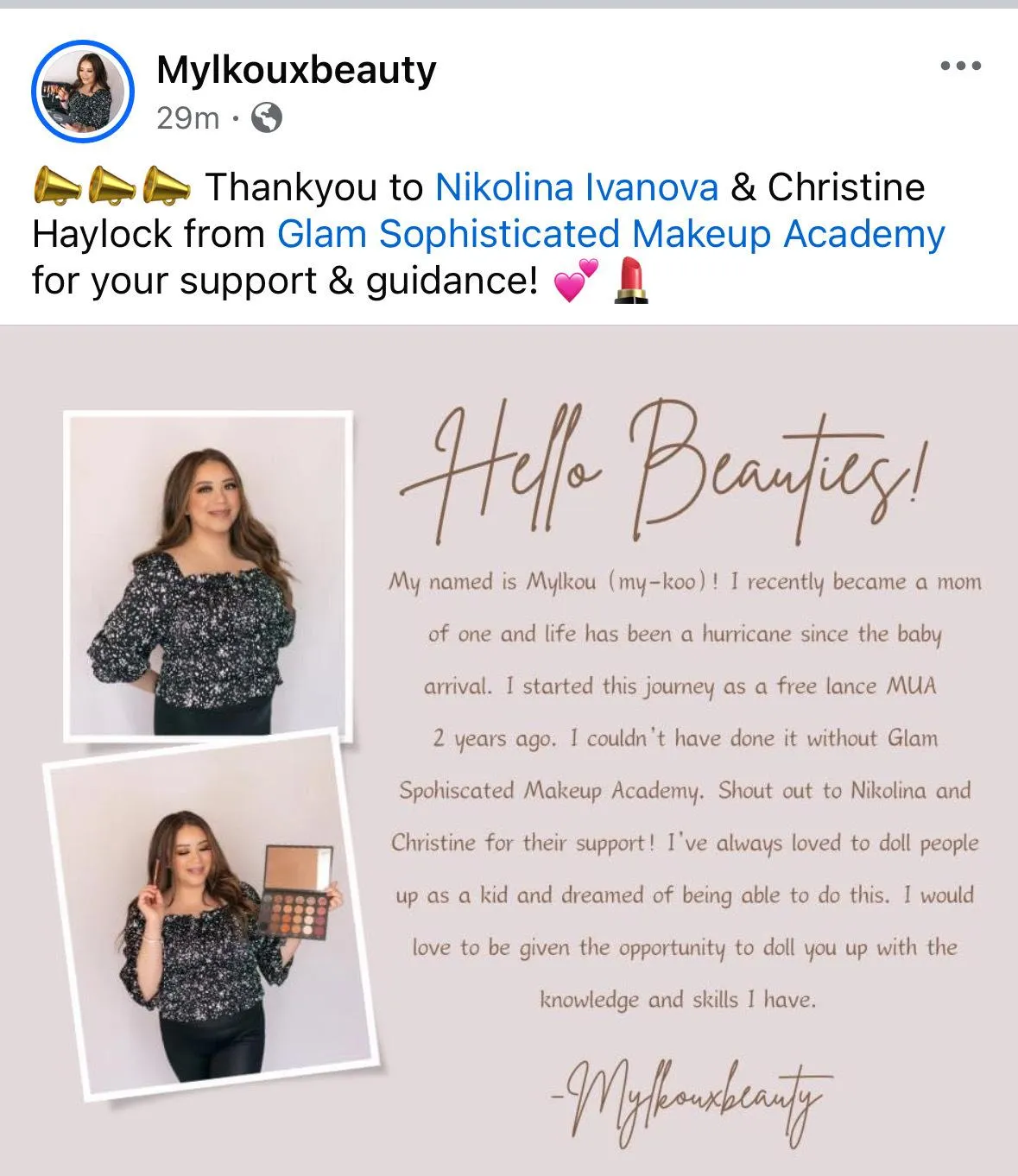 So I decided to start investing into coaches, mentors and other celebrity makeup artists and learn from them, like Makeup by Mario or Tamanna Roashan, where I literally sent 10s of thousands of dollars. This is when I realized that the power in success lays in learning from someone who has already done it, someone who has been trhrough it all and now can help you save time and money trying to figure it out.After getting success in my freelance makeup busienss, and after working with hundreds of clients who traveled from all over the world to Vegas, I decided it was time to teach my blueprint of how I got success in the freelance makeup world, so other aspiring makeup artists can literaly do the same.